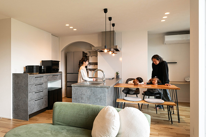 (奥様)リビングを最大限に広く、キッチンはフルフラットに、という要望からベースとなるプランを作っていただき、そこから少しずつ修正していきましたね。