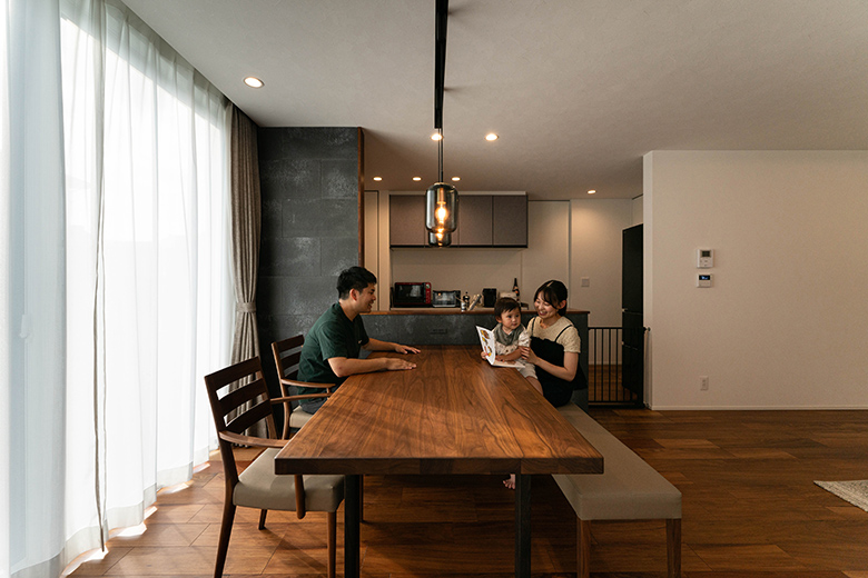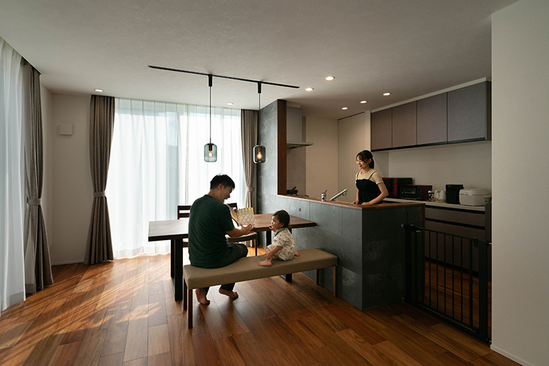 (ご主人)見学に行ったディテールさんの家が、LDKを広く感じるために必要な広さや、キッチンの位置などを考えるのに参考になりました。
