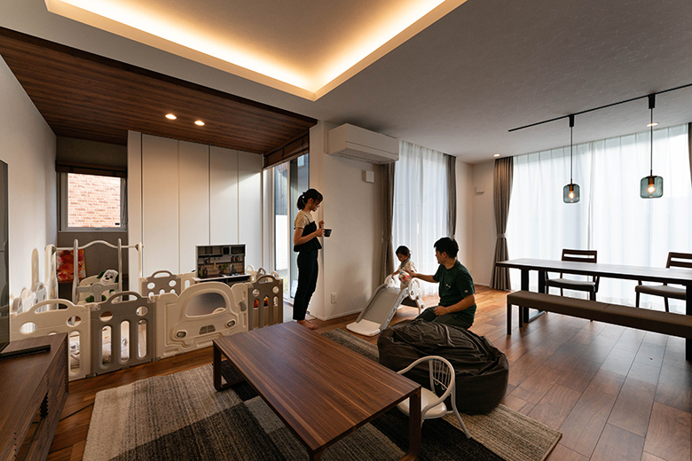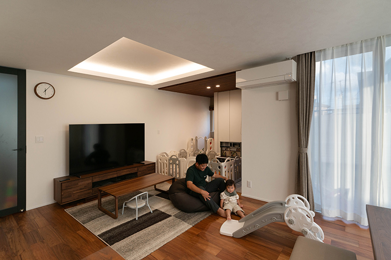 (ご主人)リビングの折り上げ天井と照明ですね。