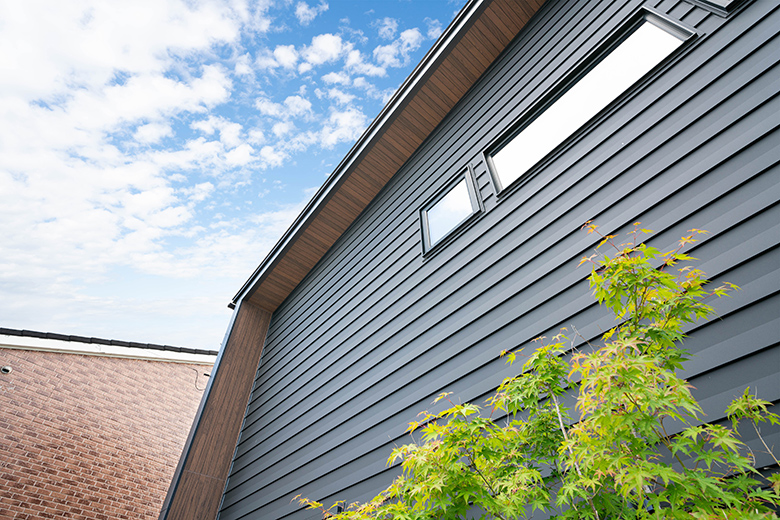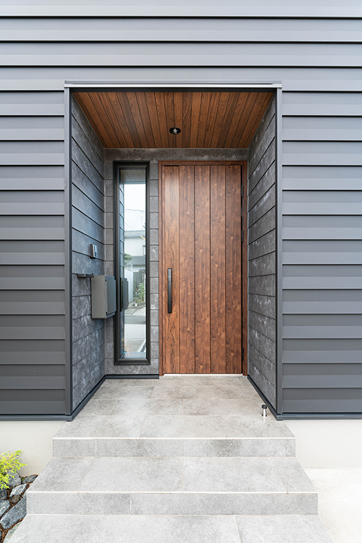 黒のガルバリウムに合う濃い色味で、本物の木に近いものをご提案いただきました。