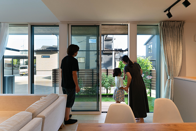 (ご主人)LDKがこの形で大きく庭に面しているから、開放感ありますよね。