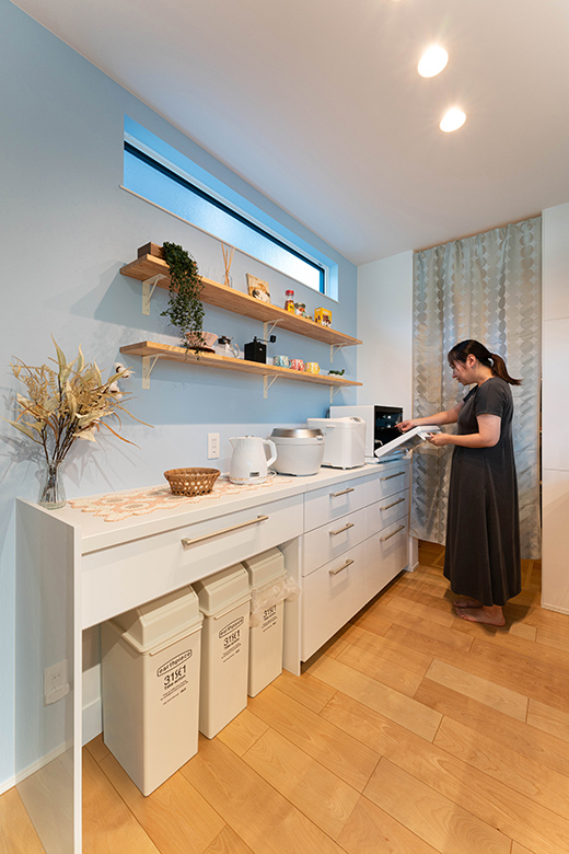 収納にしないでオープンにしたことで、リビングが少しでも広く感じられるし、私としても良かったなと思いますね。