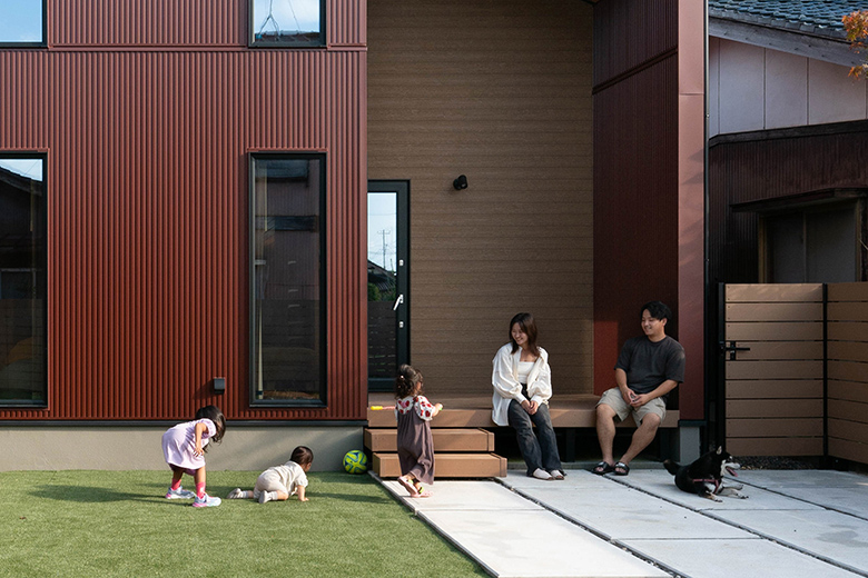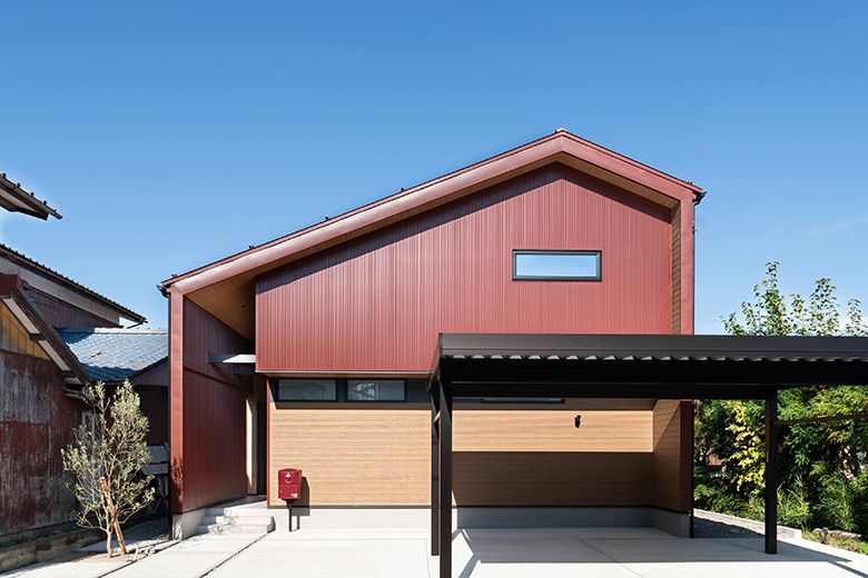 (ご主人)よく見る色の外壁は嫌で、赤のガルバリウムにこだわりました。