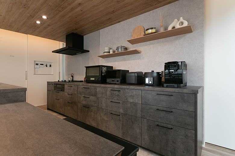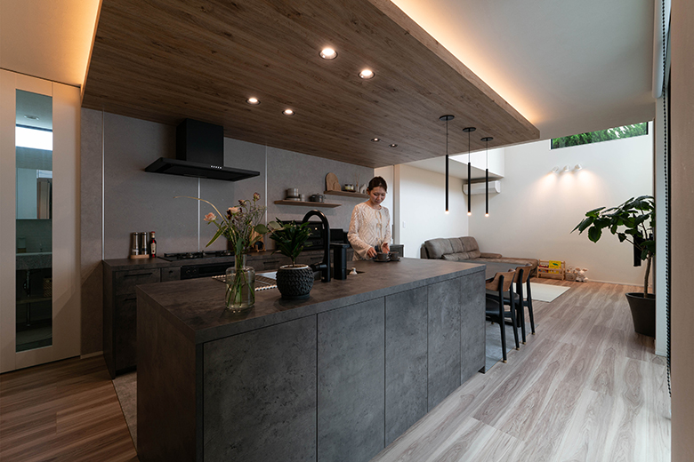 アイランド型で存在感のあるキッチンにしたくて、作業スペースも確保できるII型が理想的でした。
