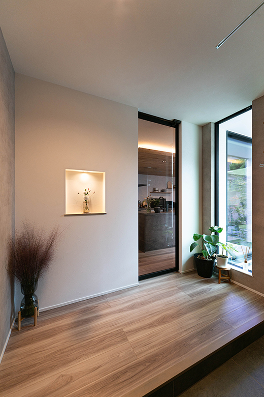 (ご主人)他にも植物を飾るための玄関ニッチや、ガラスのリビングドア、洗面台など、ひとつひとつこだわりを形にしてもらいました。