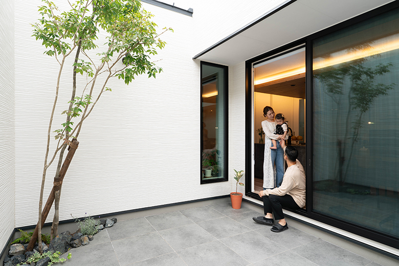 テラスが道路側にあるプランも提案してもらいましたが、もっとプライベートな空間にしたくて、コの字型にしてもらったんです。