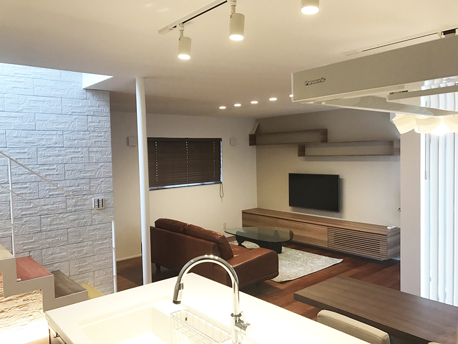 新潟市江南区|1.5階の高天井とカーテンレスのLDKで、海外照明と家具が映える住まい|完成見学会【予約制】
