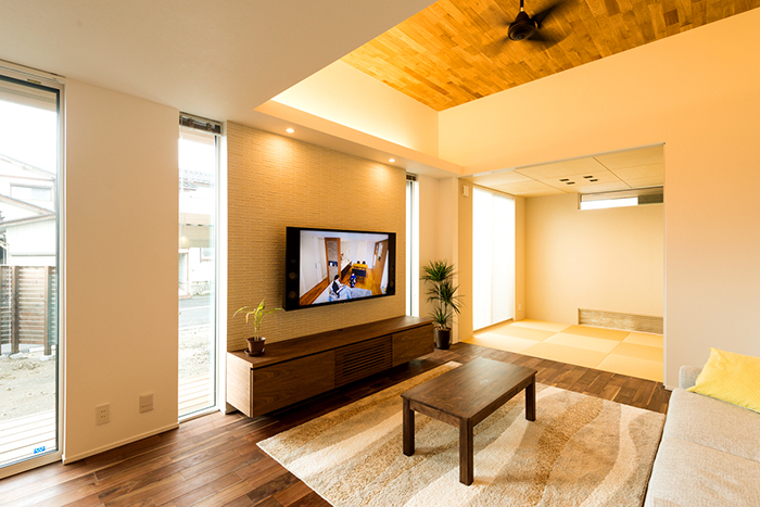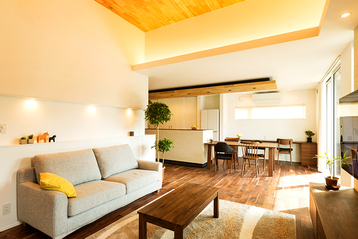 広いリビングと高天井、そして収納量とすべてを充実させたゆとりの空間。