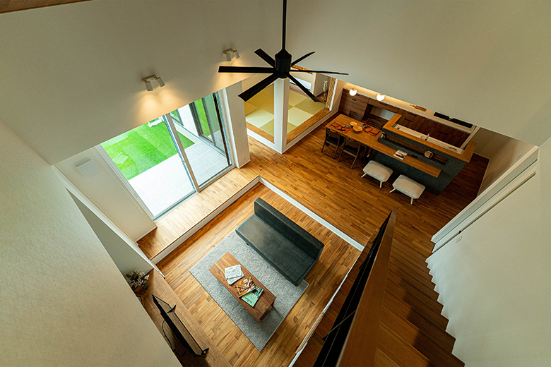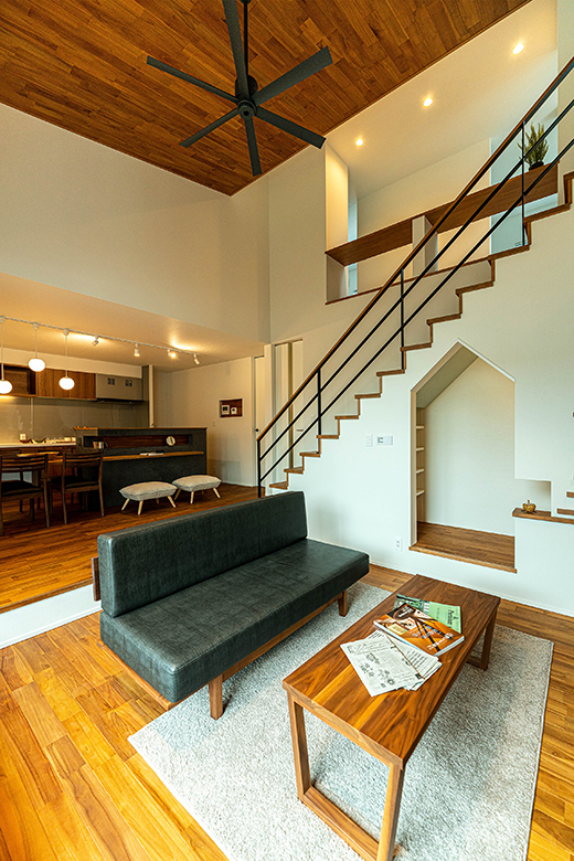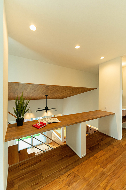 間取り面ではワンフロアで完結する平屋スタイルを守りつつ、小屋裏(ロフト)を採用。