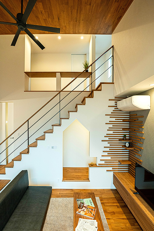 奥様がこもって漫画を読めるスペースとして、階段下にヌックを造作