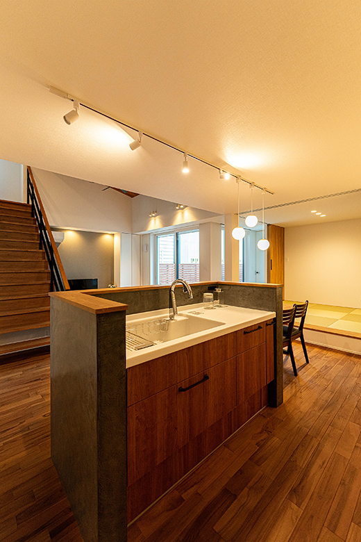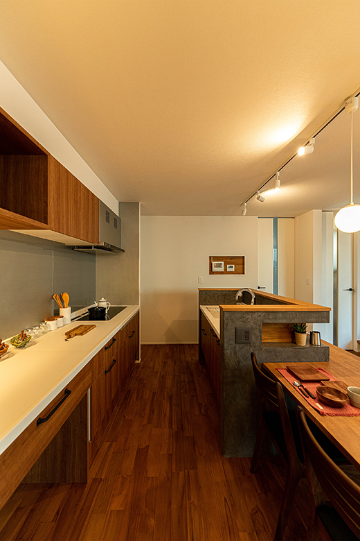 性能だけではなくキッチンは独立したシンクを採用し、二の字型のキッチンにすることにより料理の作業性を考えたこだわりの空間。