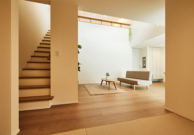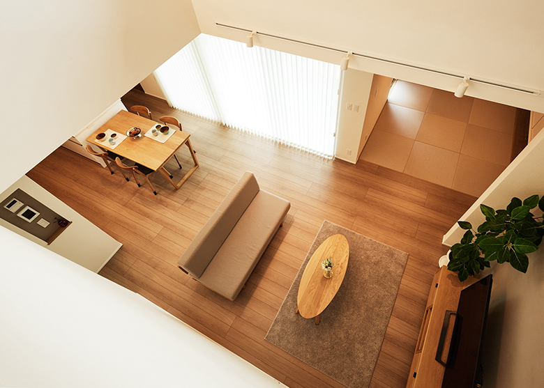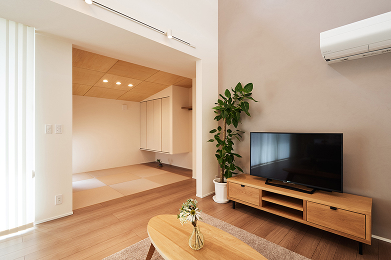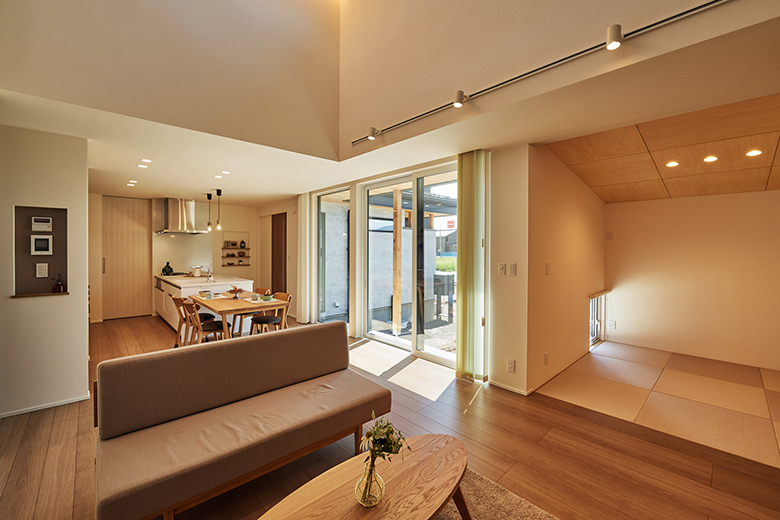 リビングに隣接して和室コーナーを設け、広がりのある空間に