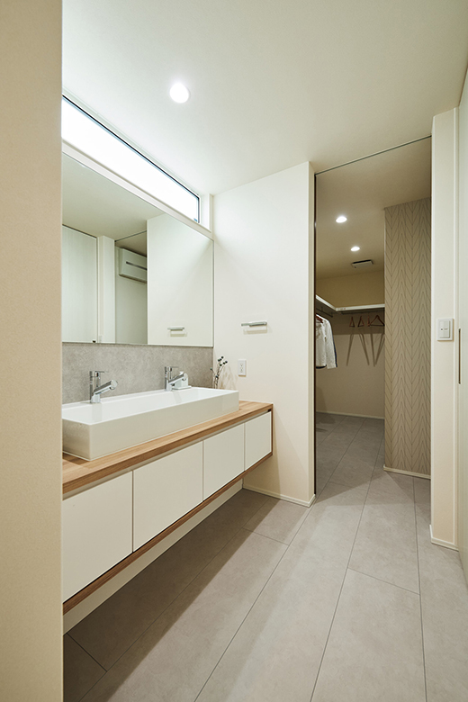 そして造作洗面台など、こだわり抜いた平屋の住まい。