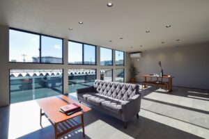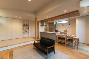 新潟市江南区|1.5階の高天井とカーテンレスのLDKで、海外照明と家具が映える住まい|完成見学会【予約制】