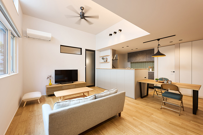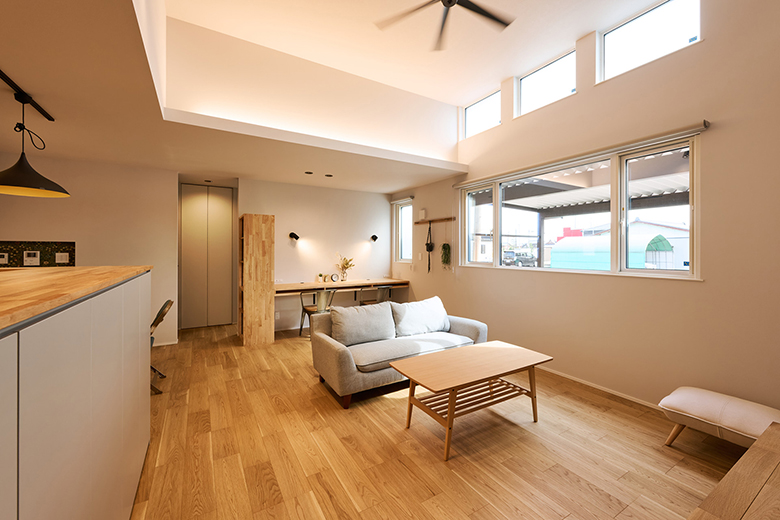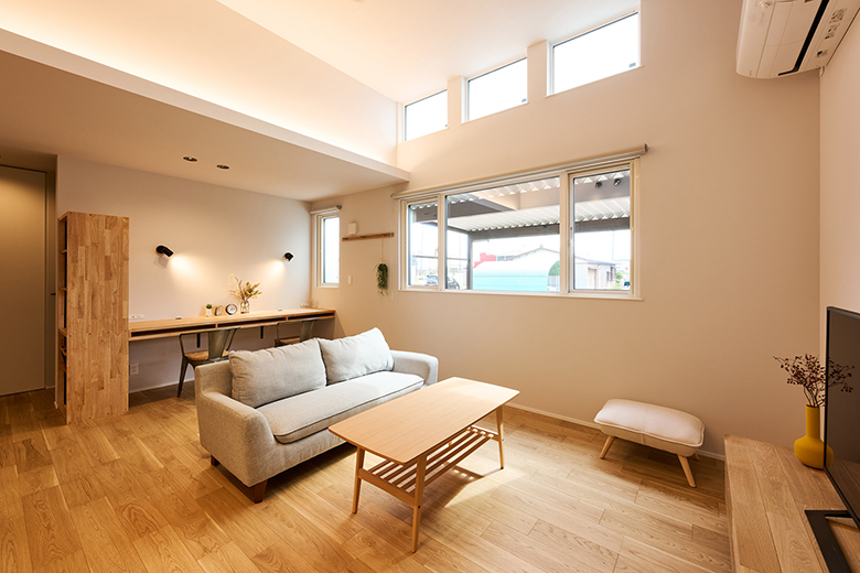柔らかな光が差し込む明るいリビングは家族の憩いの場に