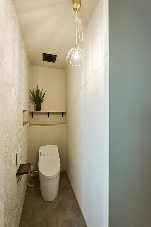トイレ入口側に、お施主様こだわりのペンダントを使用