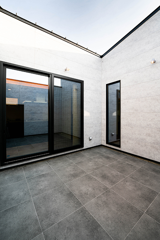 玄関からホール奥の中庭がゲストを心地よく出迎え、9帖の中庭をLDKで囲み、どこにいても中庭が見渡せる家族想いのマイホーム。