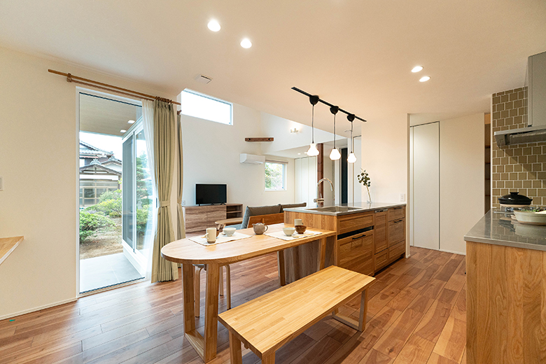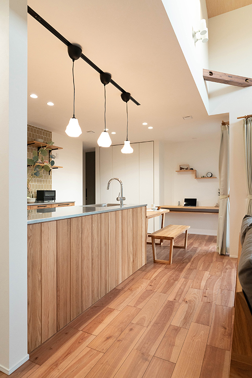無垢材キッチンとロフトが魅せる上質な平屋|燕市