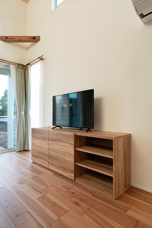 造作のテレビボードは収納量も充実