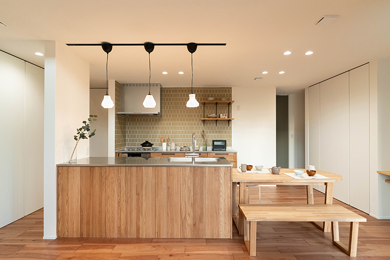 おしゃれなペンダントライトに照らされ毎日の家事も気分が上がる