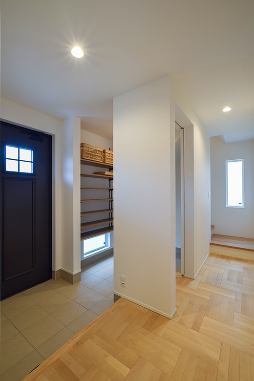 玄関横に設けた大容量のシューズクローク。ホールから直接アクセスできる動線で、暮らしやすさを高める設計