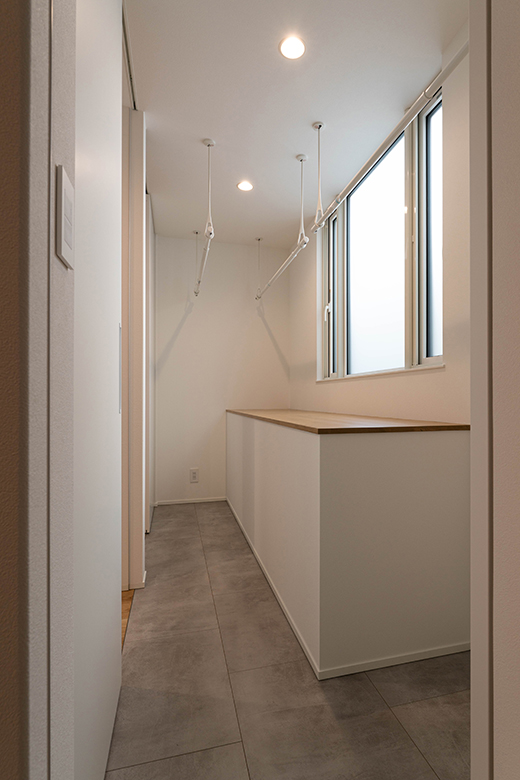 省スペースでもいかに洗濯物を干せるようにするか、工夫を施したランドリースペース