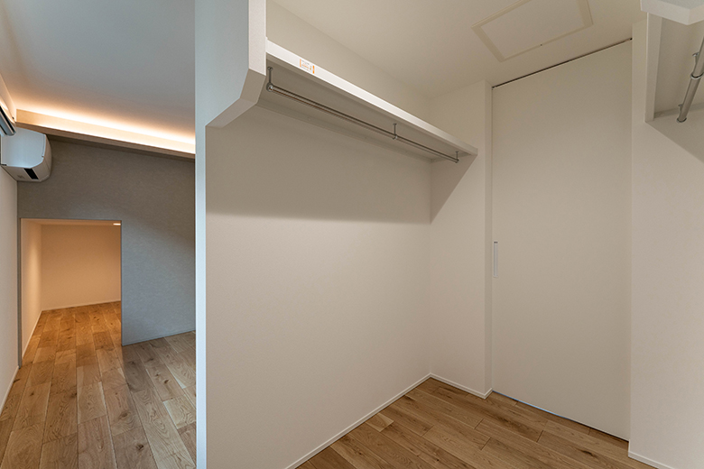ウォークインクローゼットへつながる。たっぷり収納できる広さも魅力