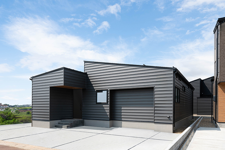 高低差と凹凸で奥行き感を出した外観は、いぶし銀一色でまとめることで上品かつ洗練された印象に。