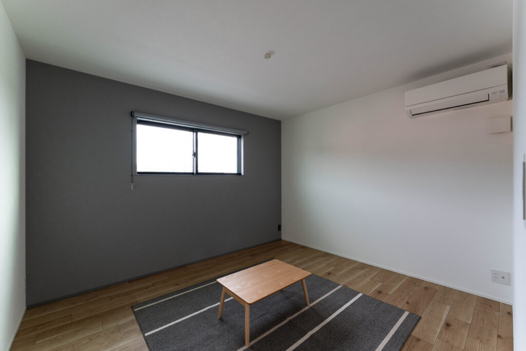 グレーのアクセントクロスで空間にメリハリを効かせた居室
