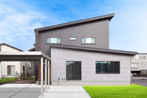 窓をなくした正面デザインが魅力のスクエアハウス|阿賀野市|K様邸