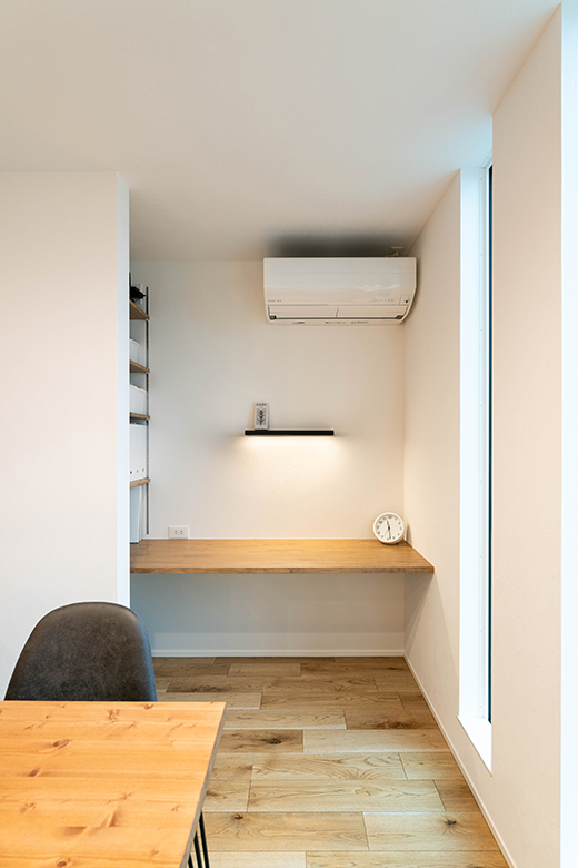 ダイニング横に設けたスタディコーナー。家族の気配を感じながら作業や勉強ができる便利なスペース