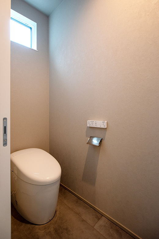 グレーを基調としたシンプルで落ち着いたコーディネートのトイレ