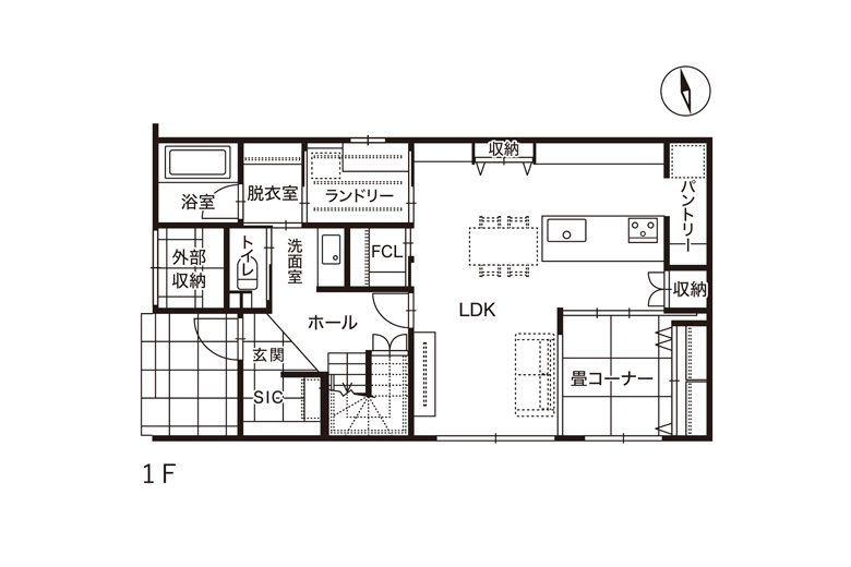 忙しい朝の準備を1階でスムーズに完結できるよう、動線と収納計画を工夫した住まいが完成。