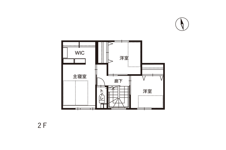 2階はプライベート空間に限定し、無駄のない間取り。内装はグレーとブラックを基調としたデザイン。