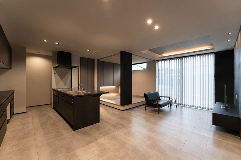 LDKにはご主人のくつろぎ空間となる小上がりの畳コーナーを設け、家族の団欒と個の時間を両立。