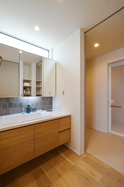 毎日の洗濯を簡単かつ快適にこなせる動線設計と、空間バランスにもこだわった。