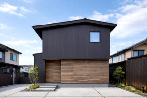 市街地で建ぺい率の制限がある中でも、インナーガレージとカーポートを併設し、限られた条件の中で理想のプランを実現。
