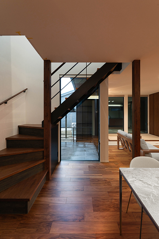 インナーガレージと中庭のあるL型プランの家|新潟市東区|T様邸