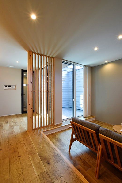 ピットリビングとセンターテラスを配した回遊動線の住まい|長岡市|A様邸