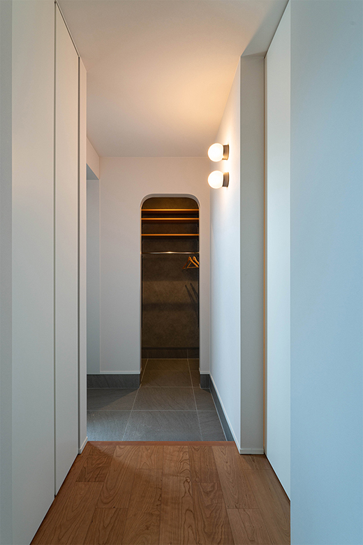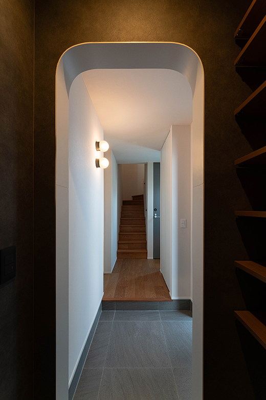 やわらかい印象のR開口と色使い、デザイン照明による優しい光の演出など、細部まで丁寧に設計。