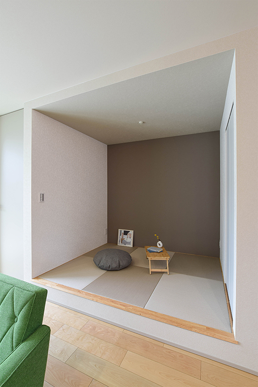 小上がりの畳スペースは段差を椅子代わりにできて、リラックスできる空間。