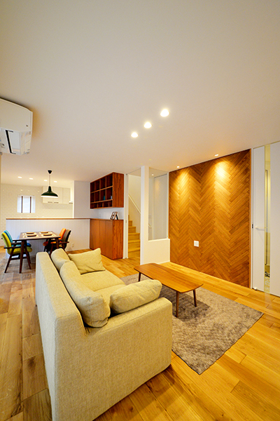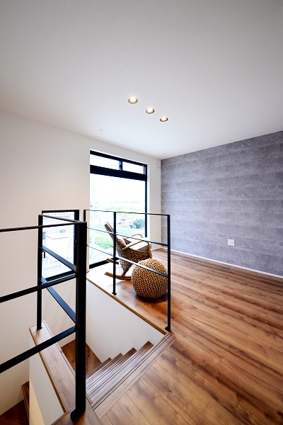 新潟市江南区|1.5階の高天井とカーテンレスのLDKで、海外照明と家具が映える住まい|完成見学会【予約制】